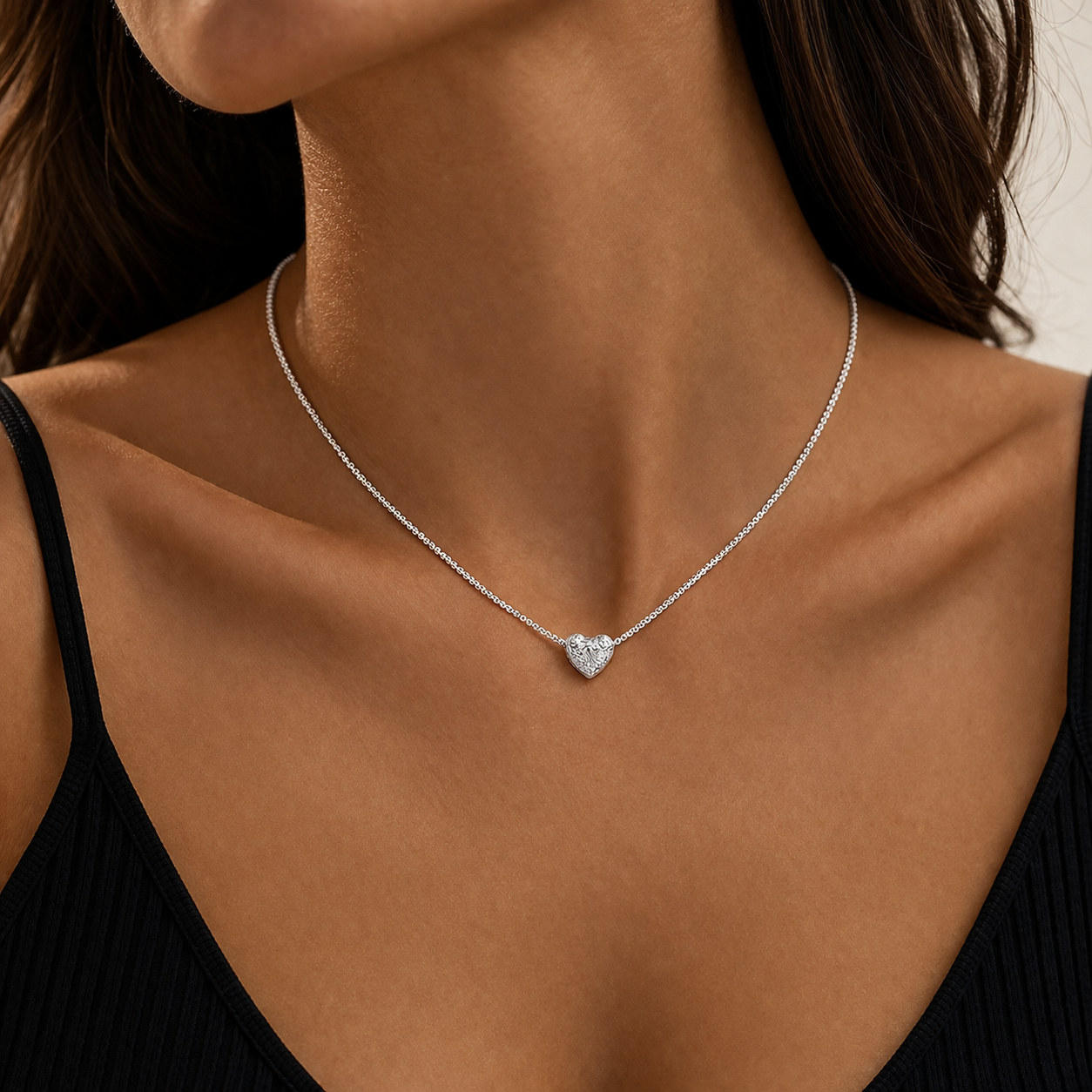 Pandantivul în formă de inimă este lucrat cu atenție la detalii, transformând această bijuterie într-o piesă specială din colecția ta.